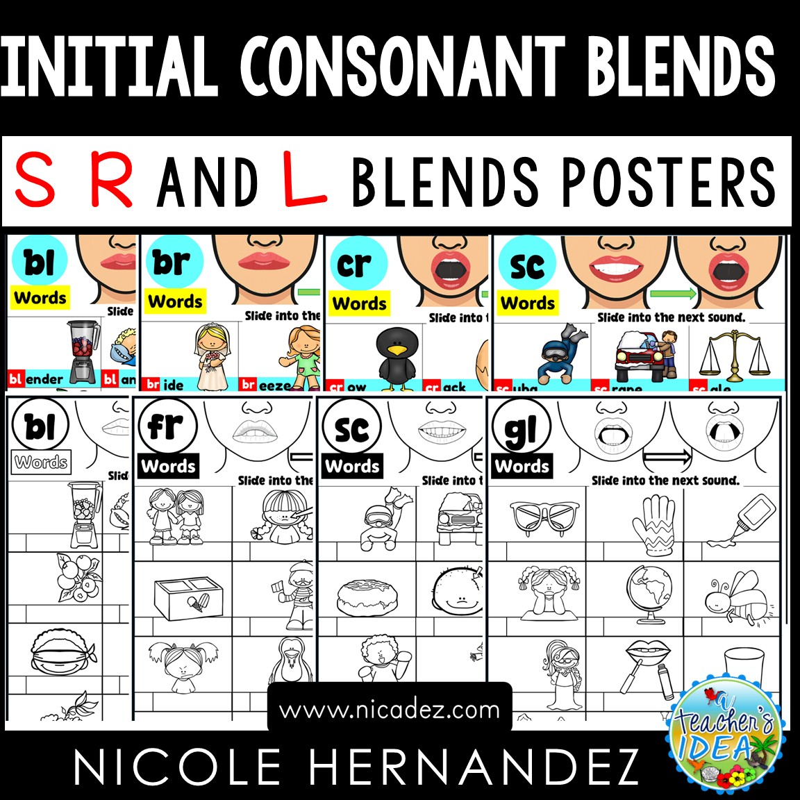 K-2 Initial Consonant Blends Posters S R and L Blends