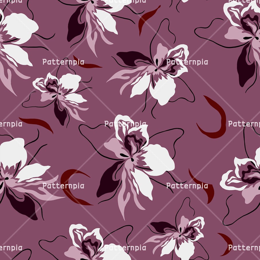 Stylized mauve orchids with dark accents.