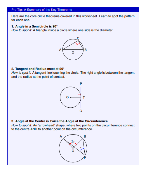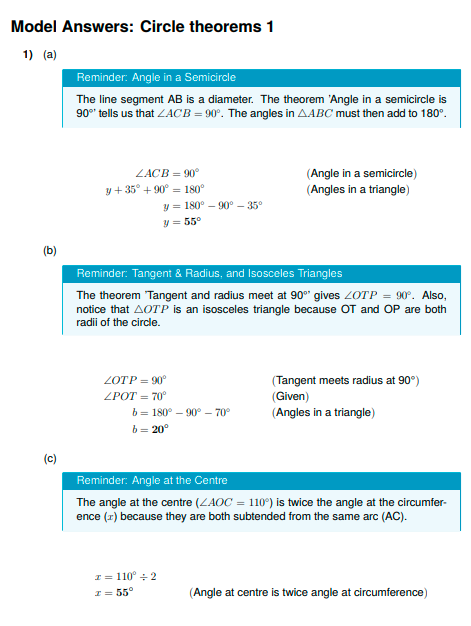 IGCSE Extended Level Maths: Circle theorems 1 (Worksheet & Model Answers)