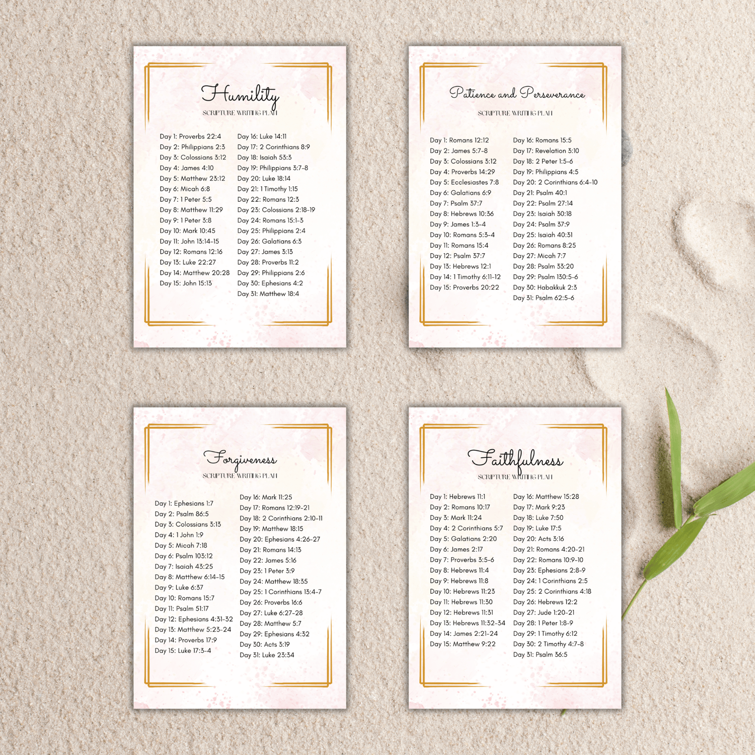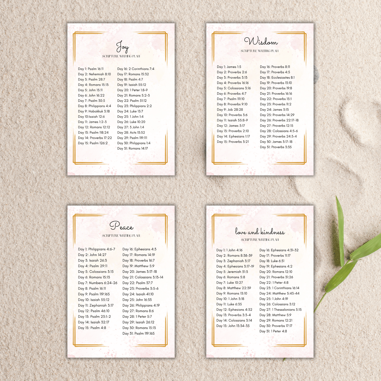 - Comprehensive Coverage: 12 distinct plans with 31 verses each, ensuring a month's worth of daily scripture writing.