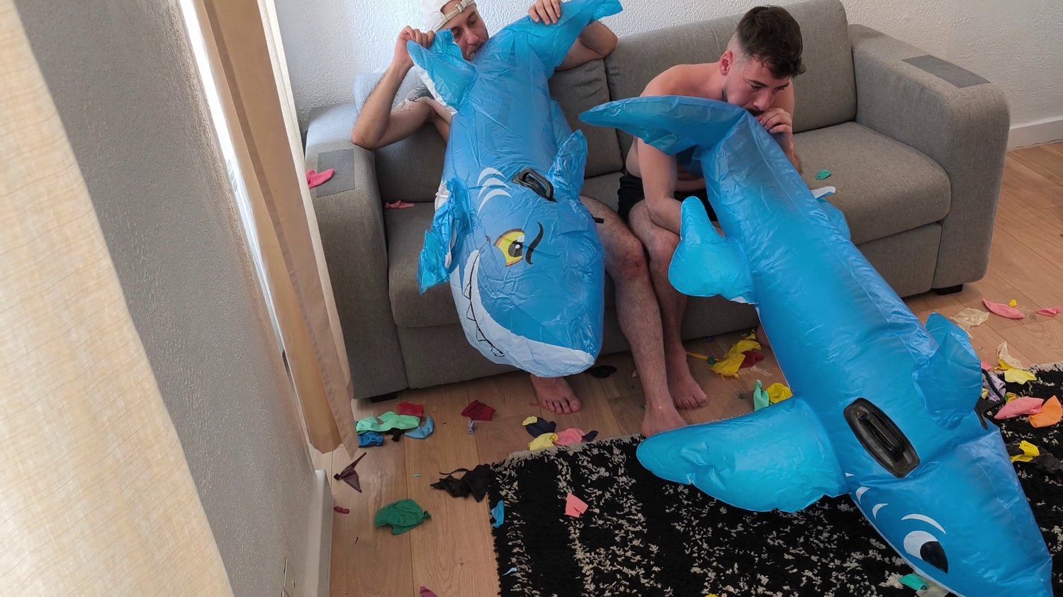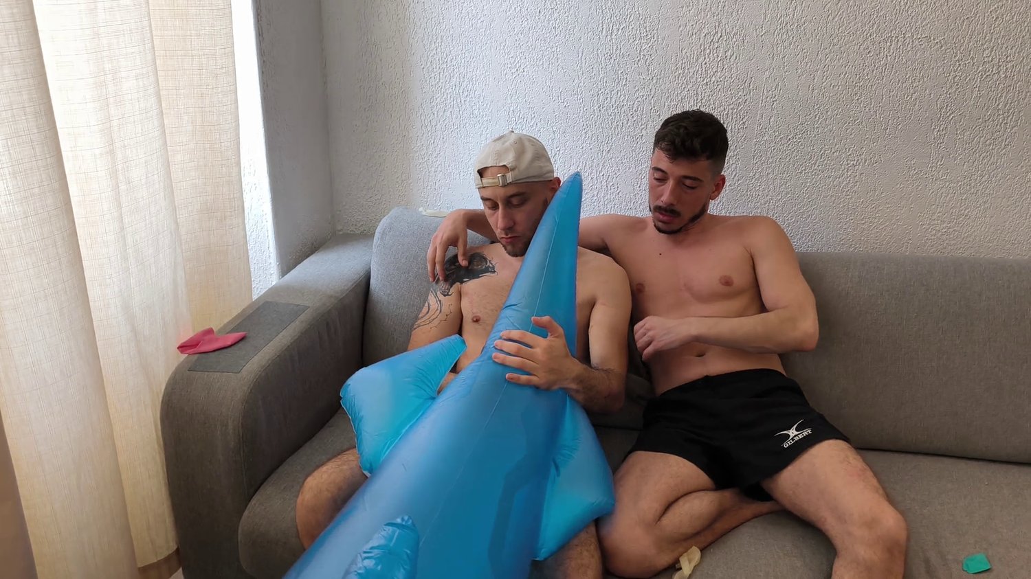 For this video Kyllan and Steven each have an intex blue shark to inflate.