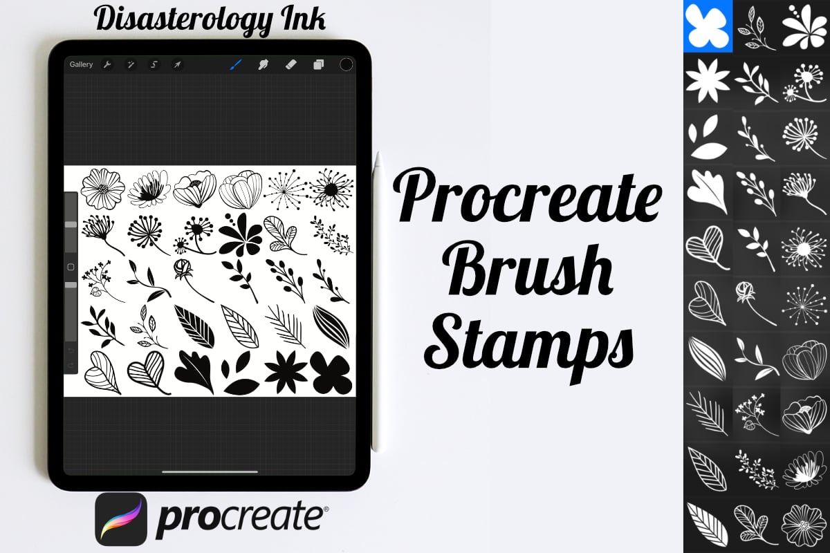 Floral Flower Set 4 Procreate Brush Stamps, 30 Floral Stamps