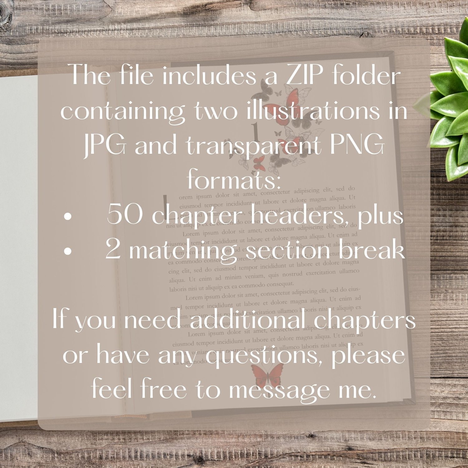 Make your chapters unforgettable with the Butterfly Chapter Header Set 2, featuring striking black and red accents that add bold sophistication to your book interior.