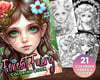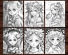 Delicate Forest Fairy Girls pt 3 Fantasy Anime Coloring Page, Adults + kids- Download - Grayscale Coloring Page - Gift, Printable PDF