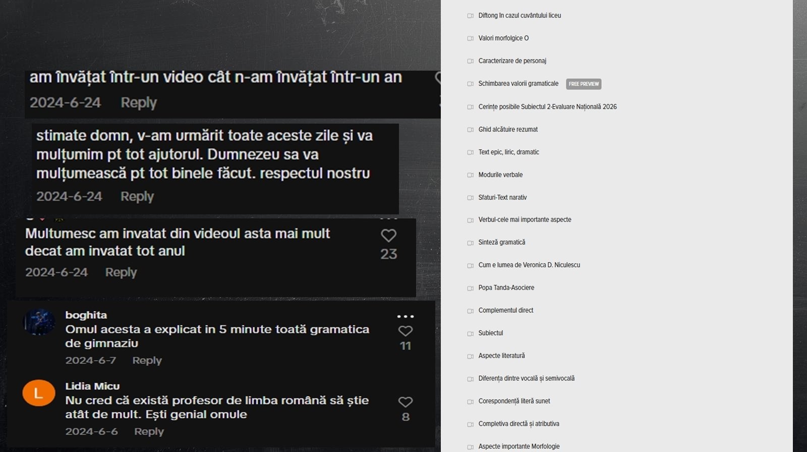 Nou- Întrucât clipurile încărcate pe diverse platforme sunt foarte bine sintetizate și uneori greu de găsit, am decis să le uploadăm și aici. Așadar, pe lângă tot conținutul de pe platformă, aveți acces și la zeci de clipuri recapitulative. Aceste clipuri au ajuns la cifre de sute de mii de vizualizări pe tik tok, mii de comentarii de apreciere și acum e mult mai ușor să le vizionezi:iată doar câteva dintre sintezele video: