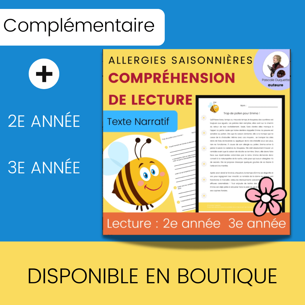 • la compréhension de lecture Trop de Pollen pour Emma (3e année)