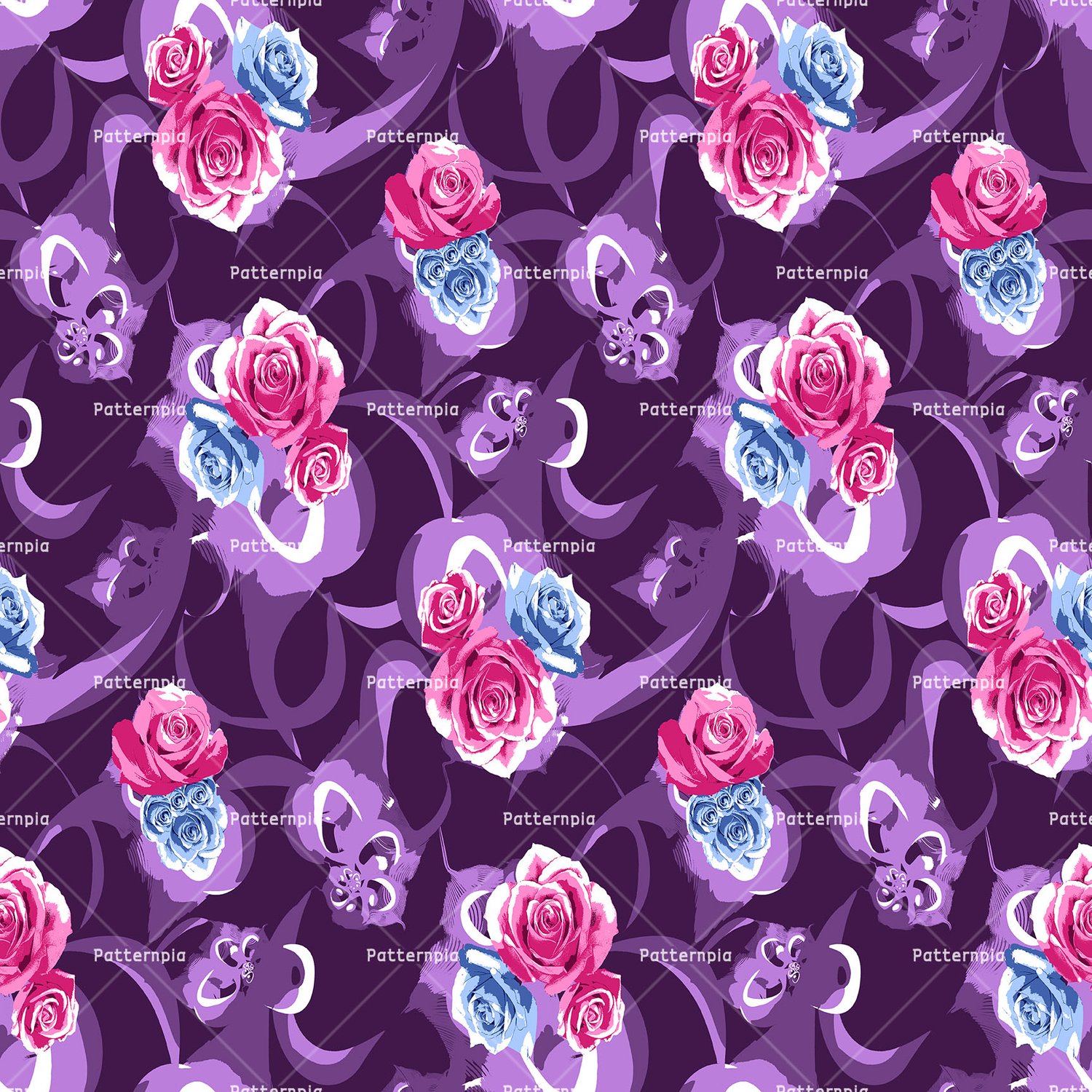 Pink and blue roses on purple base