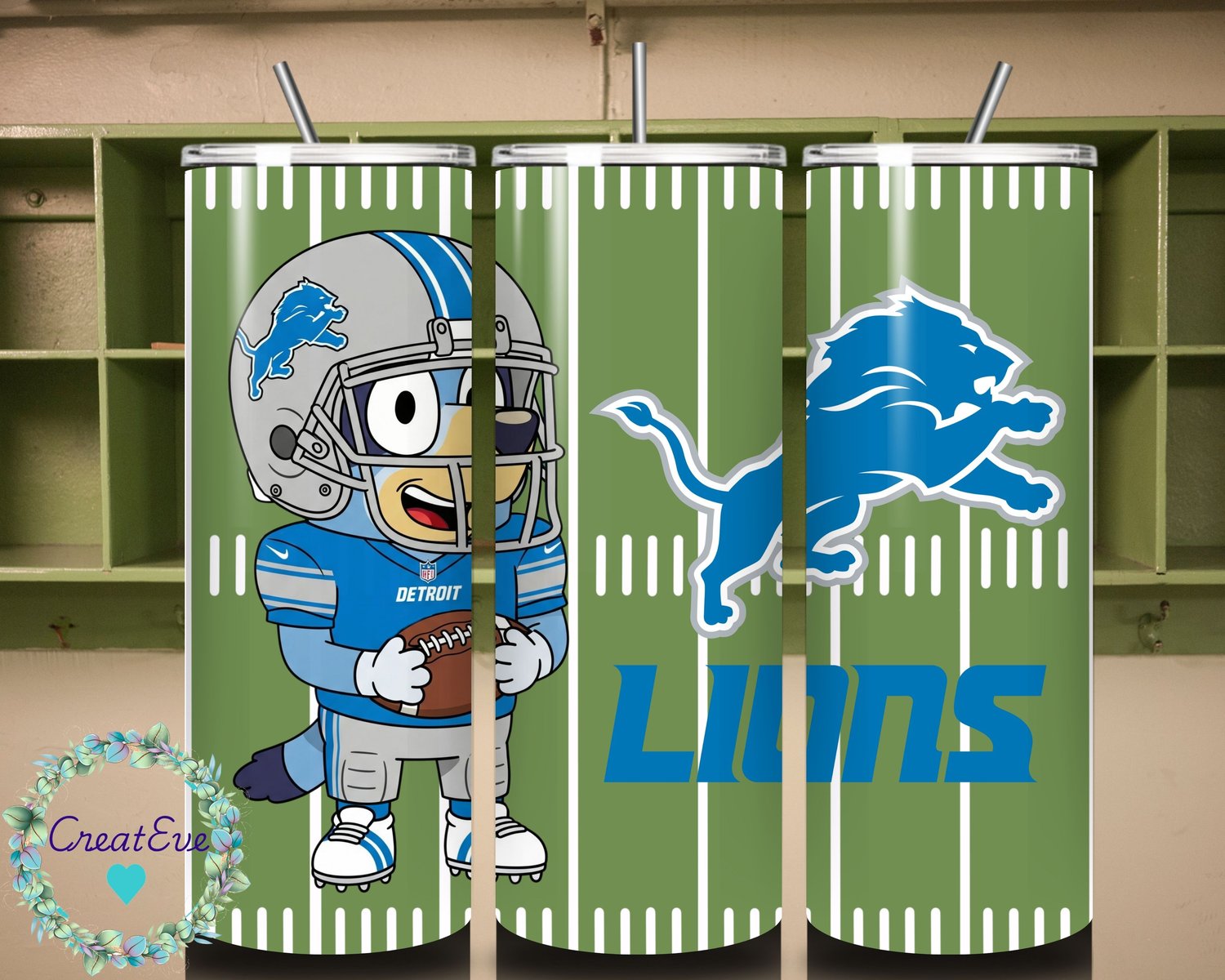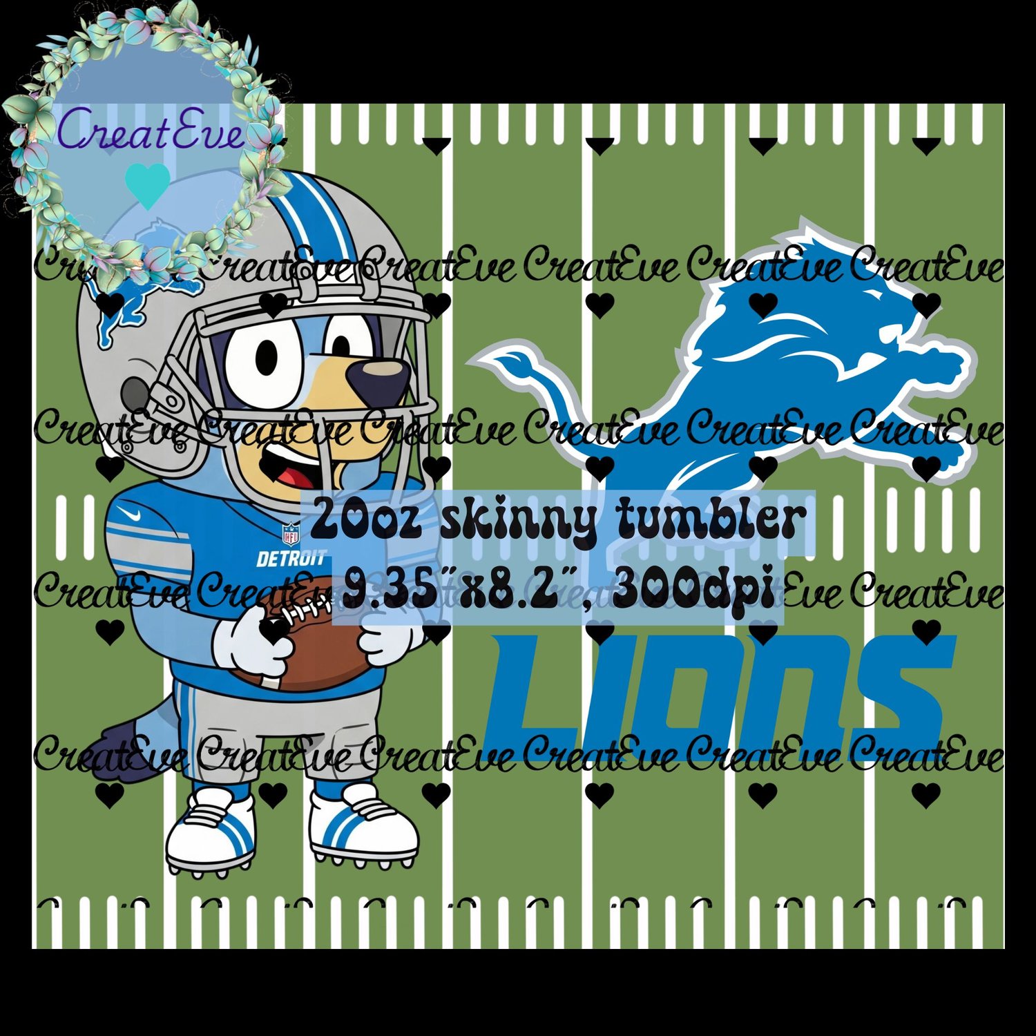 Bluey NFL Lions 20oz Seamless Skinny Tumbler PNG 300dpi