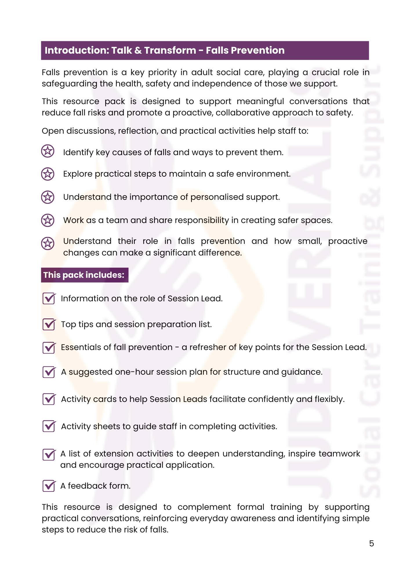 An innovative addition to team meetings, group supervisions and inductions, this reusable resource fosters meaningful discussions and practical action to reduce fall risks in residential care homes.