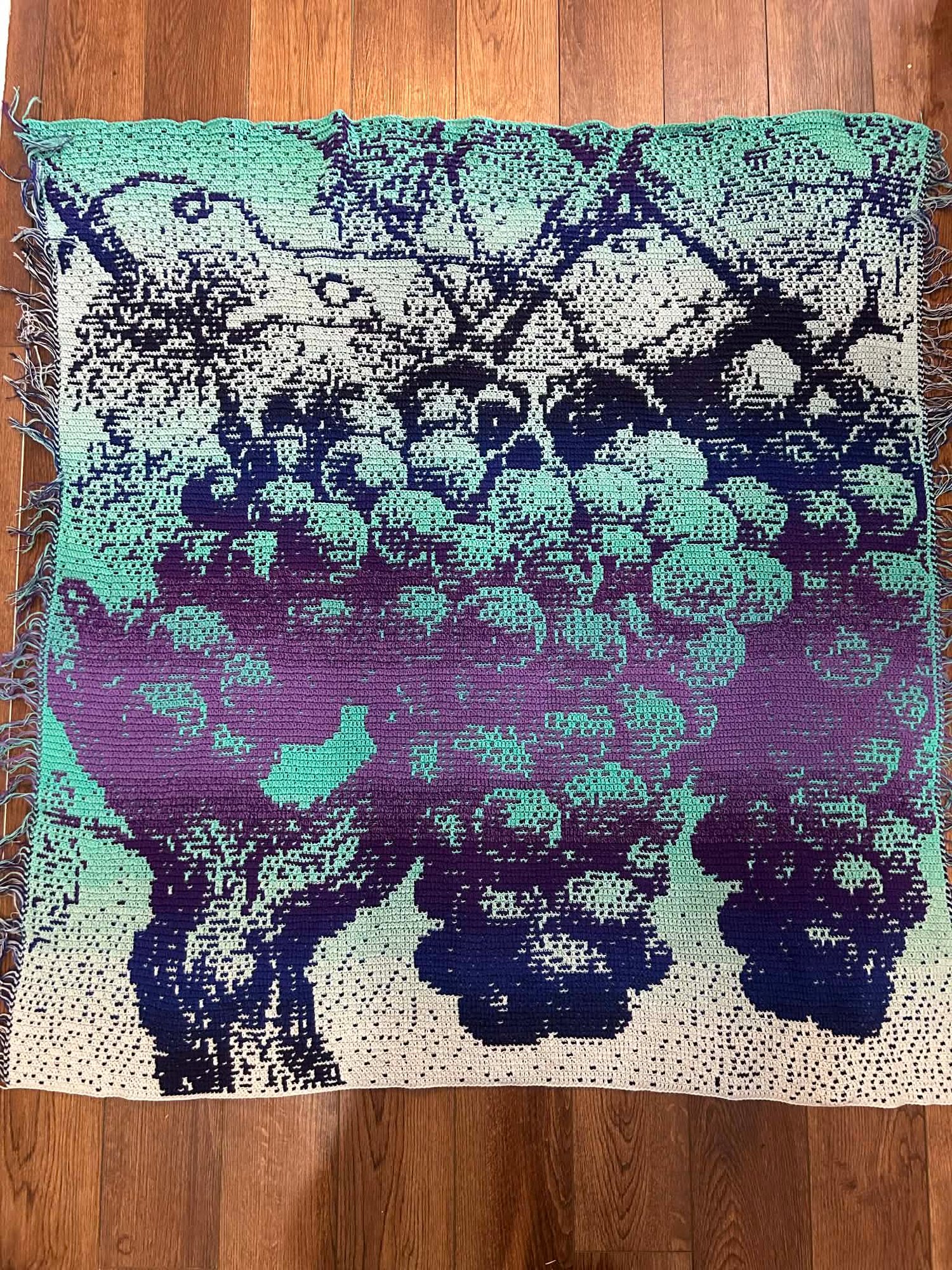 The finished size of this design depends not only on the graph size but also on the stitch of choice, hook size, yarn thickness, and other factors.
