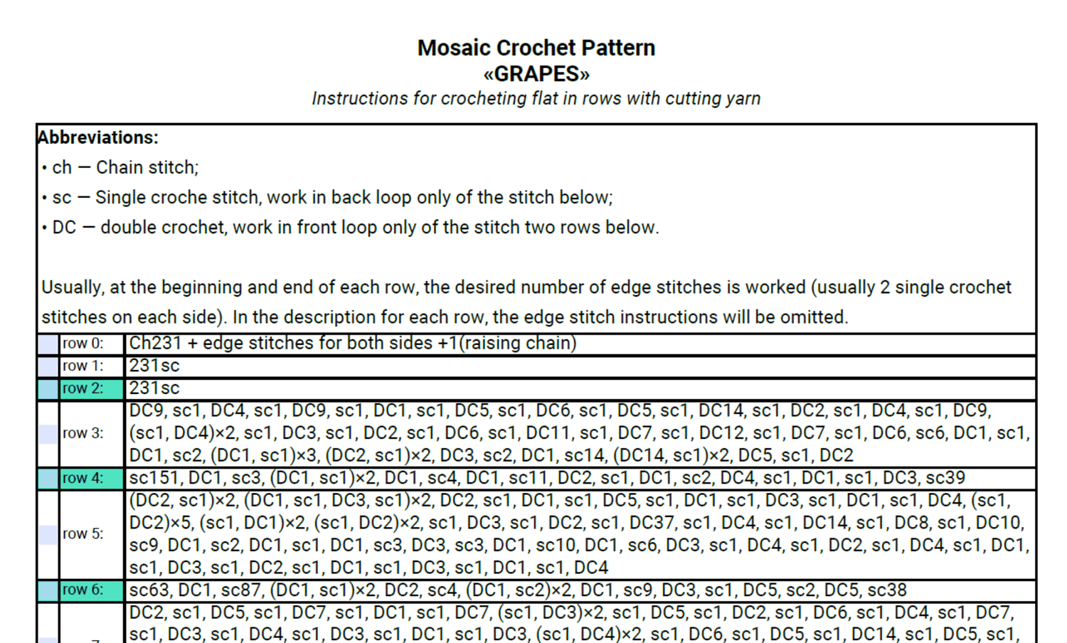 Overlay Mosaic Crochet "GRAPES" written pattern row by row, Big Chart with Xs, PDF