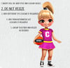 Netball Chibi dolls. 32 files. 9 dolls. 3 hair styles each with 3 colours. Choice of eye colour. Additional kit and trims, position decals. Instant download.