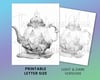 29 Crystal Teapots Coloring Book, Adults kids Instant Download -Grayscale Coloring Book Printable PDF, Flower Houses, Fairy, Teapot House