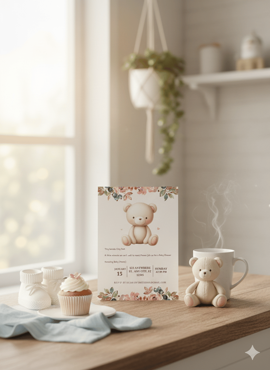 Floral Bear Baby Shower Invitation Template | Editable PDF