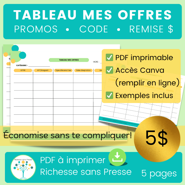• Tableau Mes offres pour repérer tes promos, cashback, codes et économies à venir