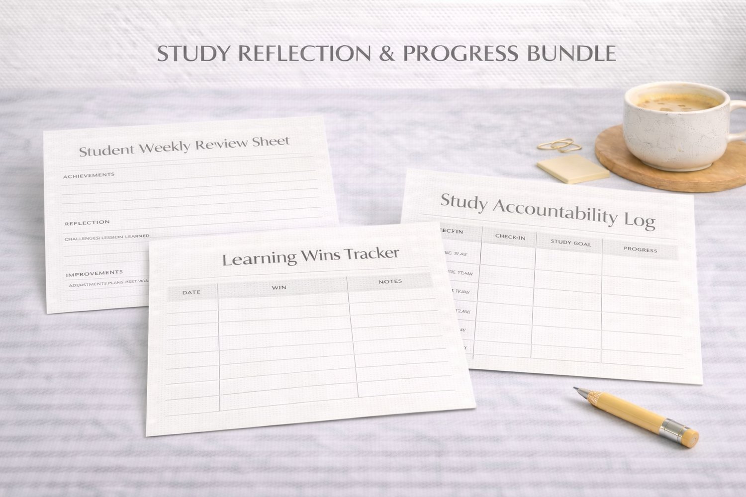 & Progress Bundle. Designed for students who want to learn from their process and stay consistent over time. Clean Nordic minimalist style, editable DOCX format.