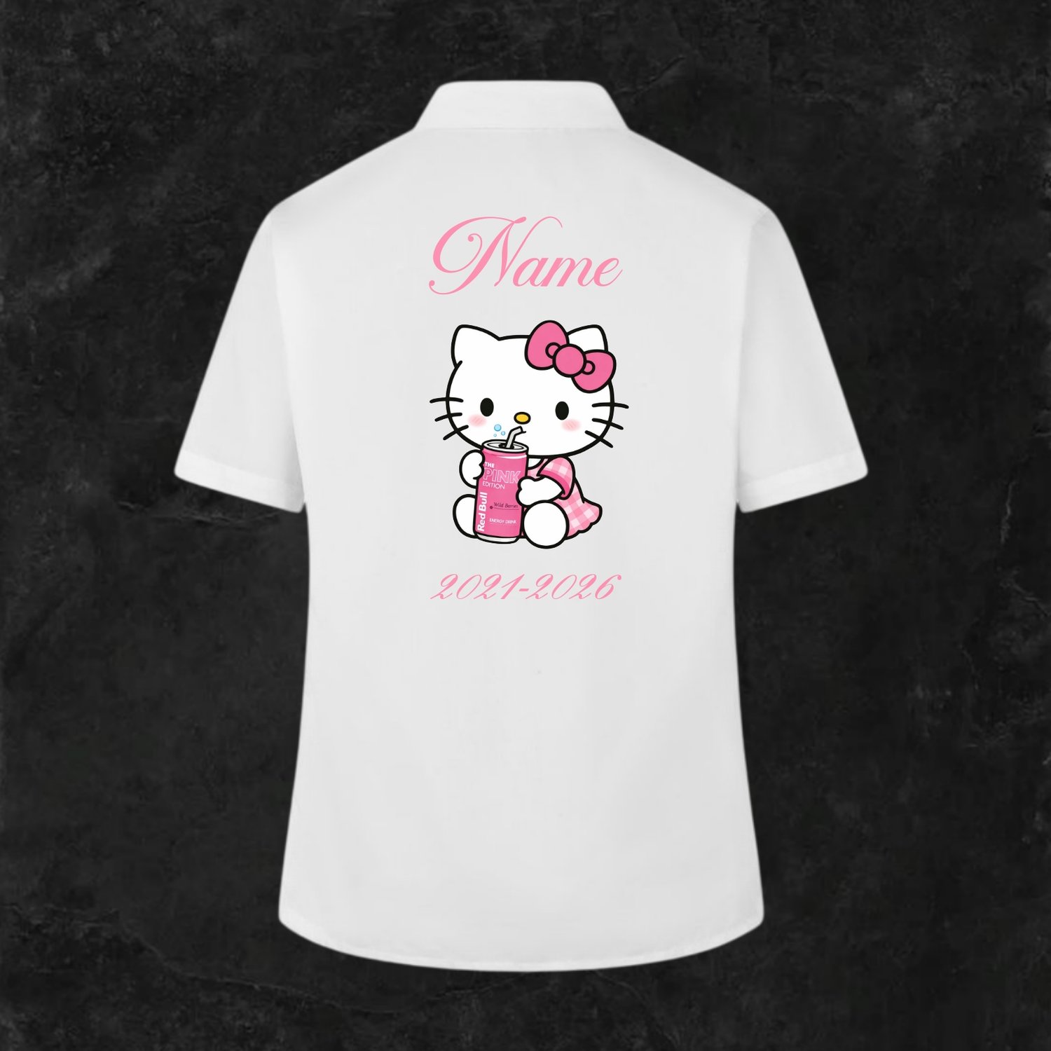 Create your own fully personalised Hello Kitty Red Bull–inspired leavers shirt 💕