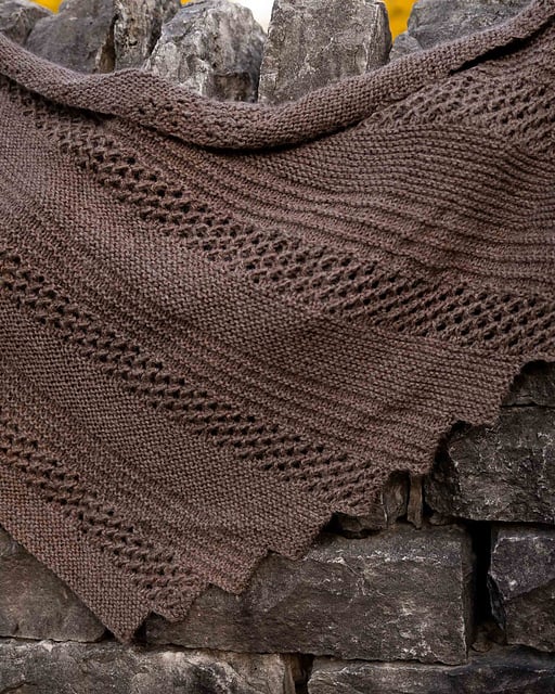 This little shawlette is named after the color of the yarn used. It is worked from the side to the point sideways as a one piece.