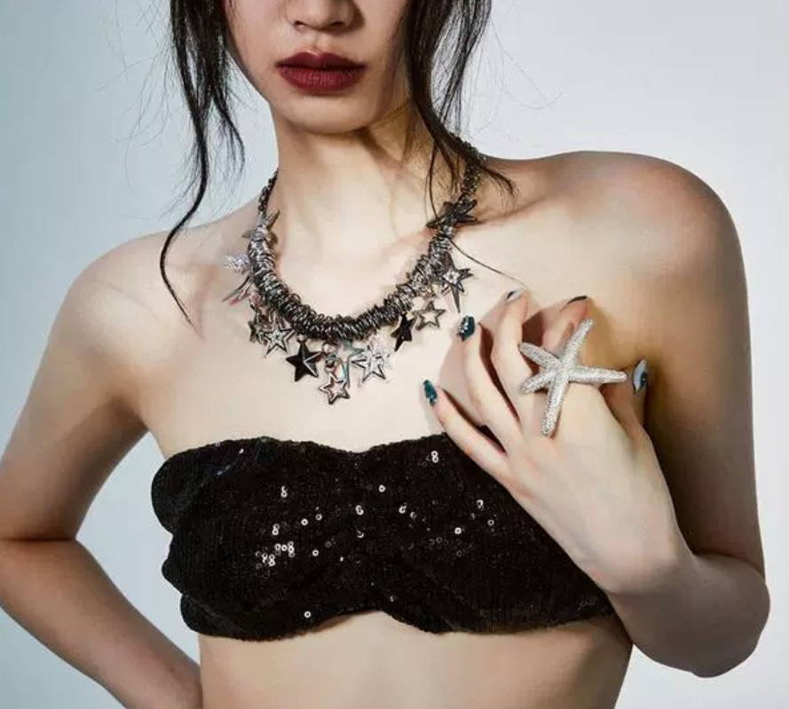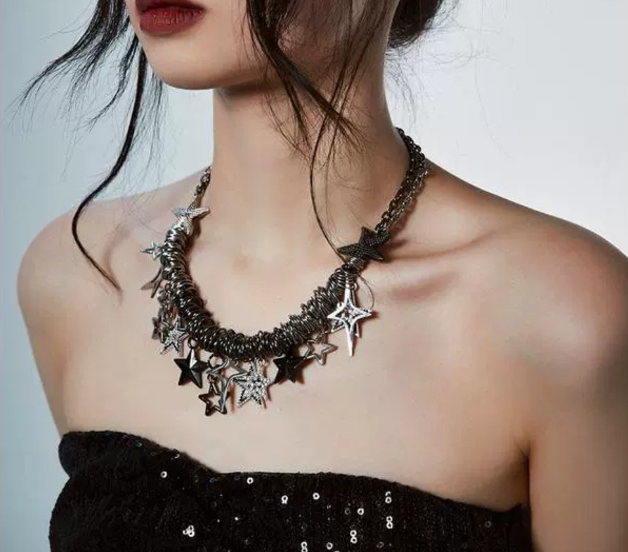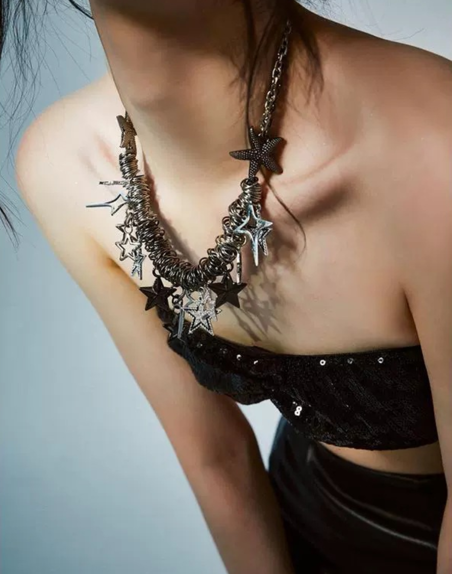 Y2K street punk Shibuya star choker necklace