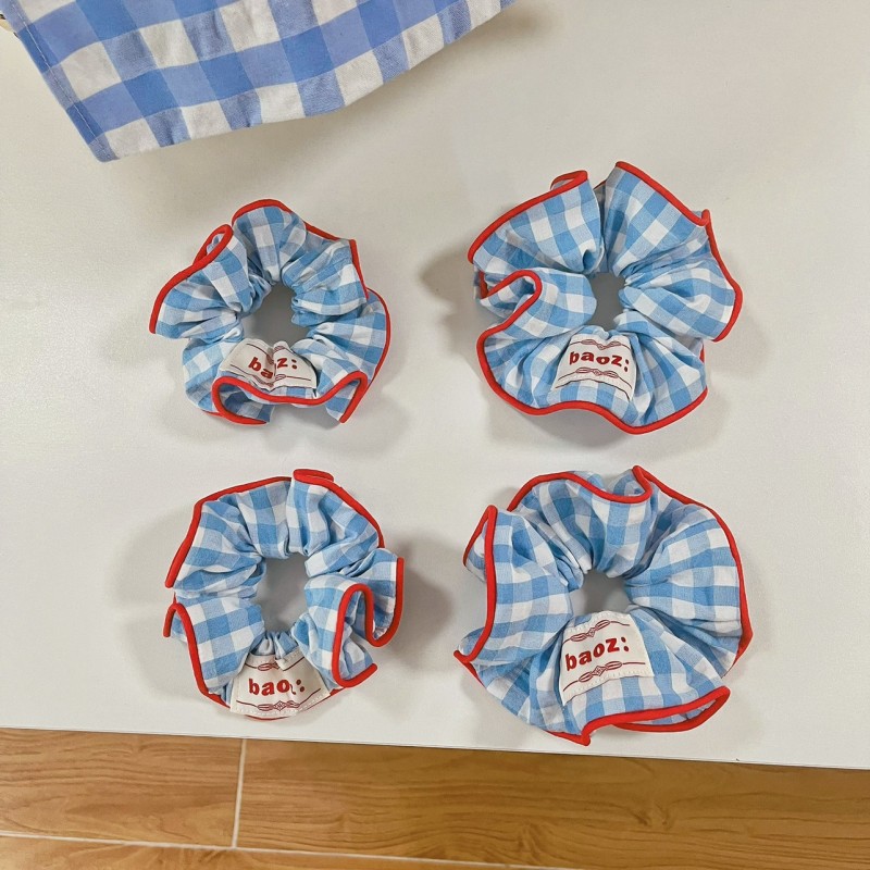 French blue checkered red edge elegant hair ties scrunchies accessories