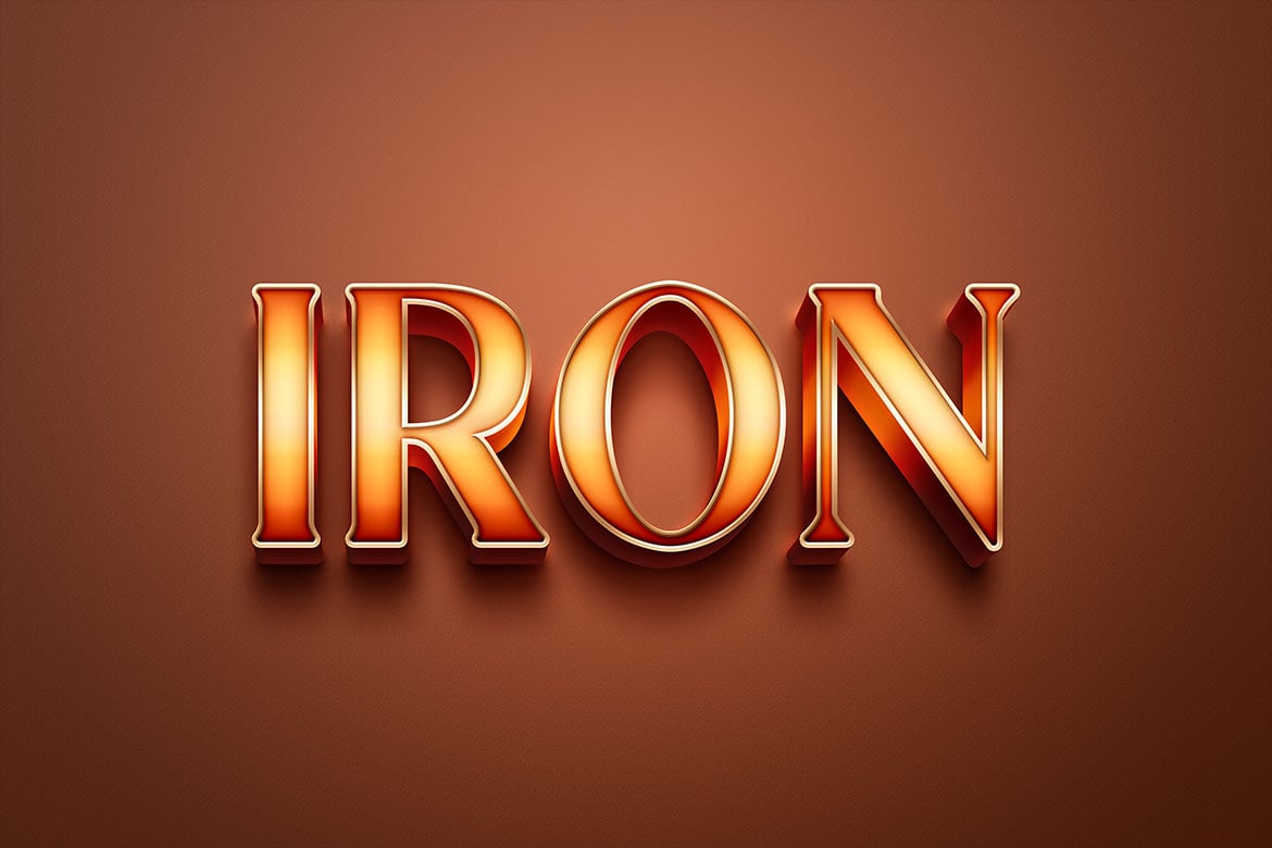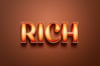 Luxurious 3D metallic effect with a warm, elegant aesthetic. The letters have a rich gradient that transitions from deep amber to bright gold, giving them a polished metallic shine.