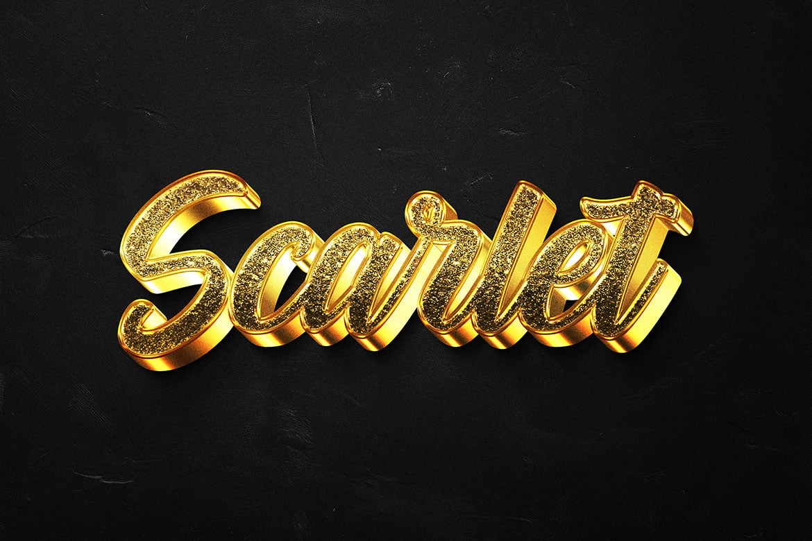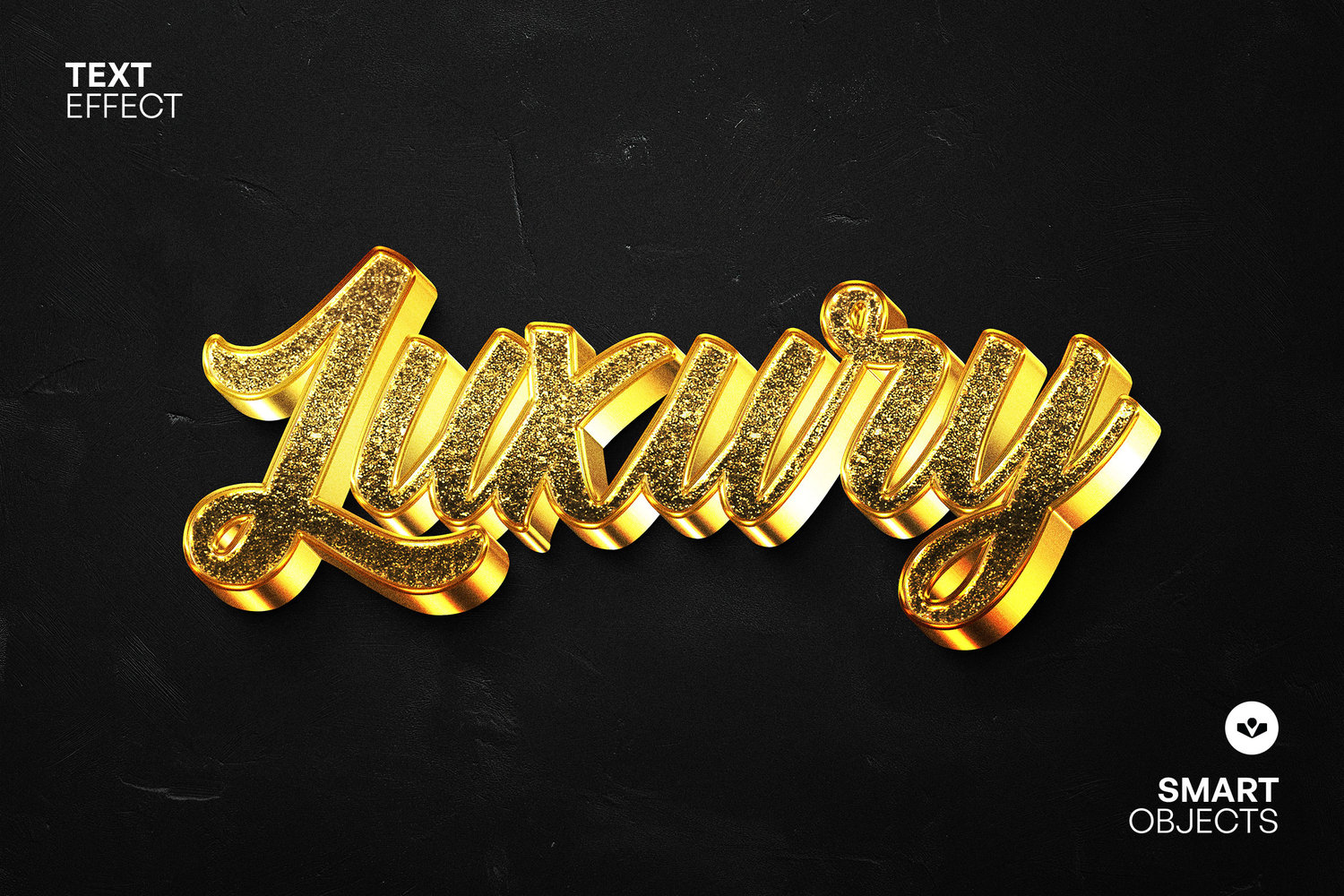 Conveys a strong sense of wealth, glamour, and sophistication and depth for a high-end visual impression. Combines golden metallic realism, glitter texture, and 3D lighting, resulting in a bold, premium, and visually luxurious text design.
