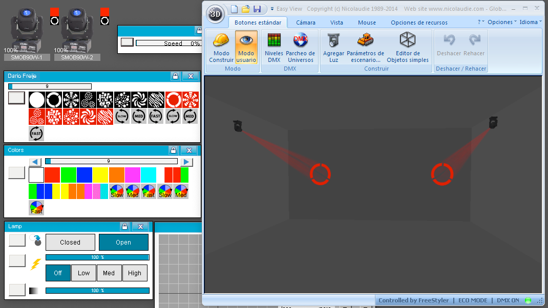 Esta Librería SSL2 está optimizada para trabajar con Magic 3d Easy View. Es decir para ver una representación 3D de las secuencias que estemos realizando con Freestyler, QLC+ o cualquier otro soft que se conecte con Magic 3d.