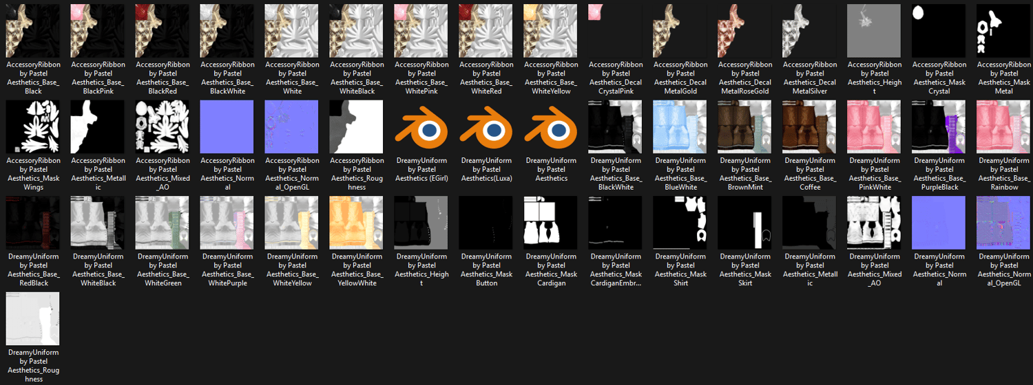 46 Textures (13 Base Colours, Decals, Height, Metallic, MixedAO, Normals, Roughness, Masks)