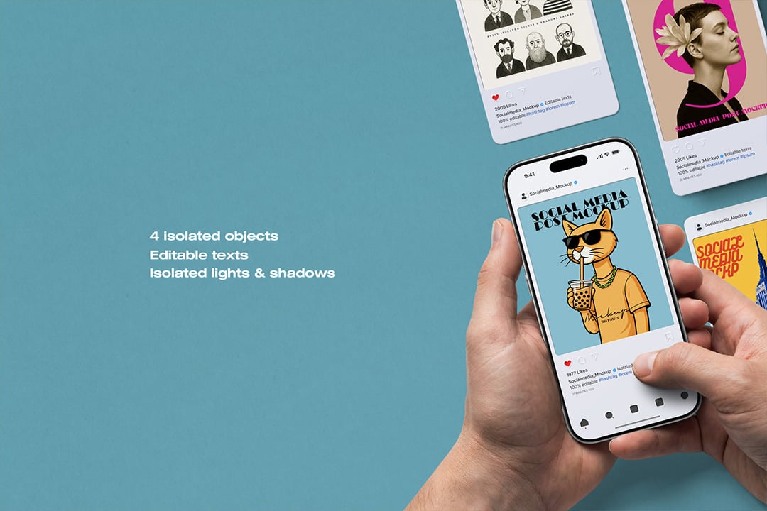 Social Media Post PSD Mockup – 1080×1080 & iPhone 16 (9 Objects)
