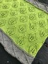 This cowl is a tribute to one of my all-time favorite books, “A Tree Grows in Brooklyn” by Betty Smith. The story of growing up and overcoming diversity has been a touchstone for me at many times in my life. The harsh girders in the borders of the cowl give way to the leaves of new life and promises of the future. A simple knit with an easy-to-memorize leaf pattern, it can adapt to any size you want. It’s the perfect accessory to layer over a t-shirt in the spring or to bundle up under your coat in the Fall and Winter.