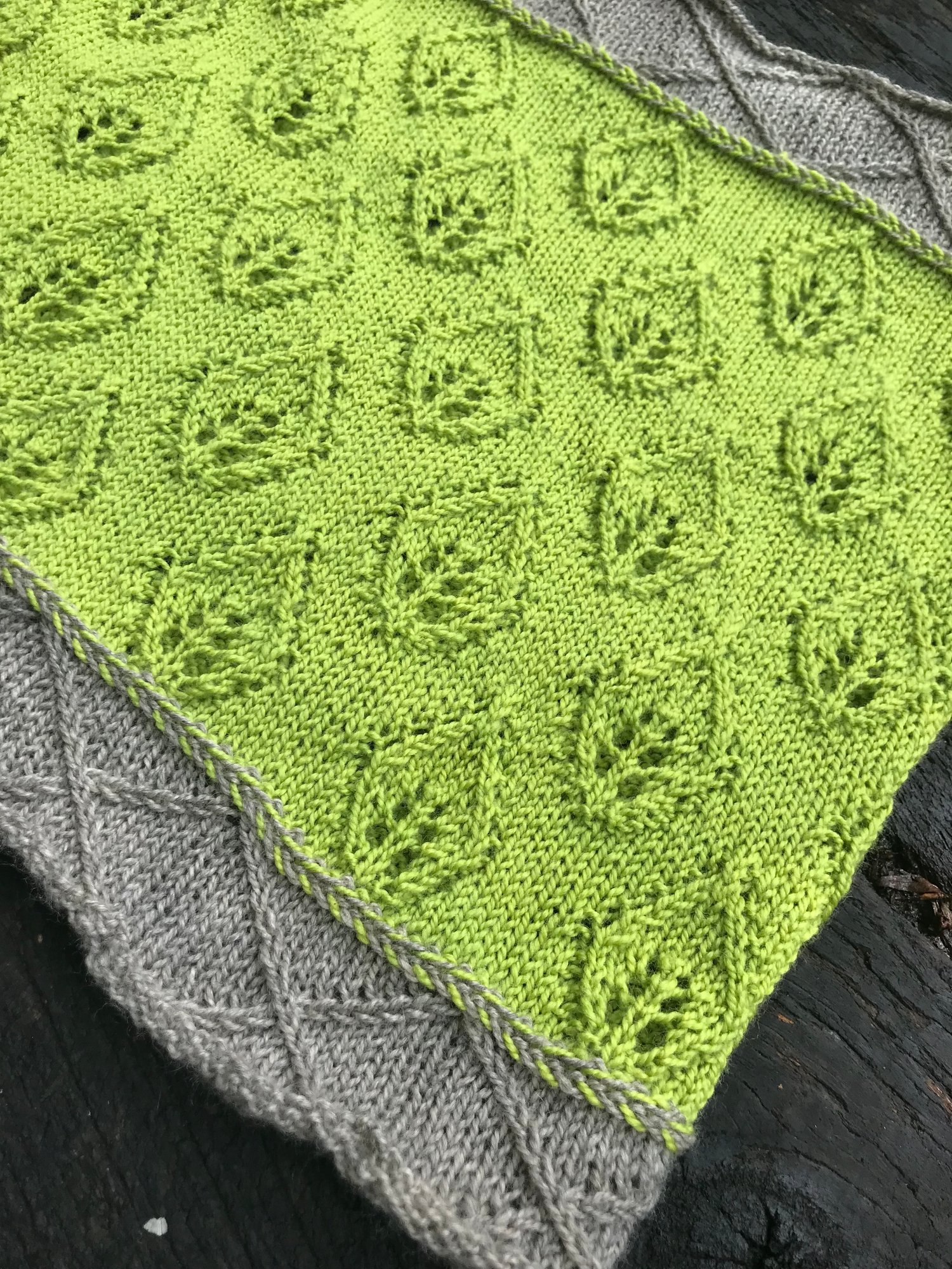 Yarns: You will want a smooth, fingering weight yarn in two colors without much color variation. For the border, you’ll want a lighter color to show the twisted stitches. For the sample, I used Cloudborn Highland Superwash Sock Twist in Citrus Green and Shaela Heather.