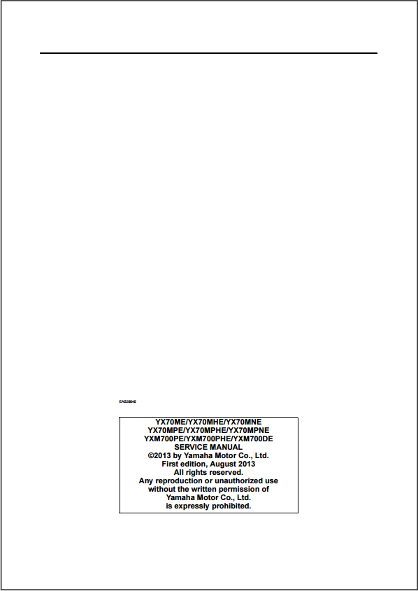 2013 Yamaha YX70ME-YX70MHE-YX70MNE-YX70MPE-YX70MPHE-YX70MPNE-YXM700PE-YXM700PHE-YXM700DE Viking Service Manual Part No. 1XD-F8197-E0