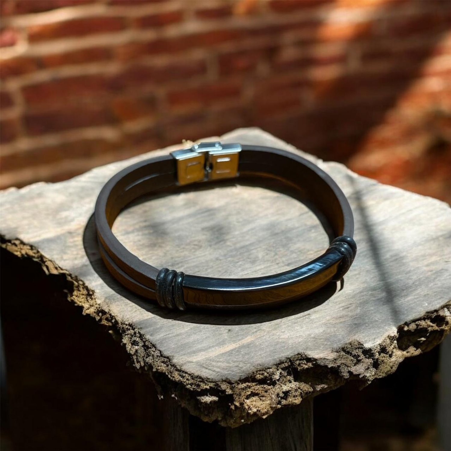Gorgeous leather style bracelet for men. Perfect for everyday casual wear.