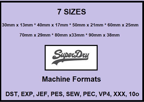 Superdry Logo professional embroidery design. Superdry high quality embroidery machine