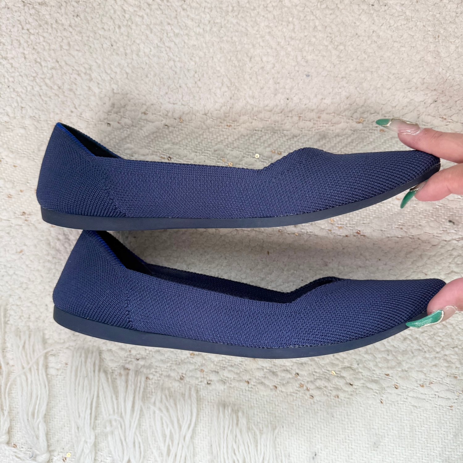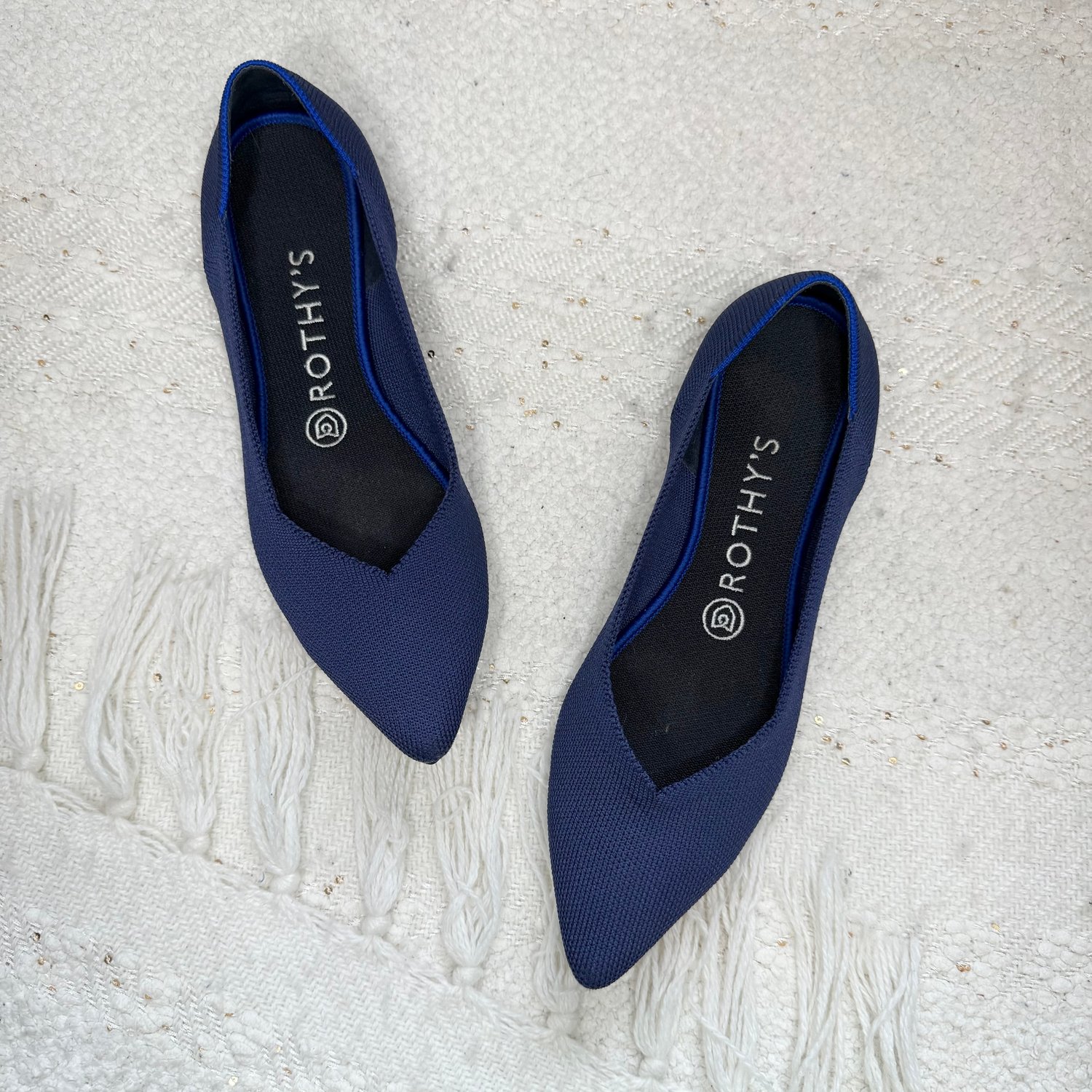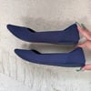 Rothy’s blue fabric pointed toe flats.