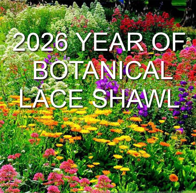 2026 brings us flowers, vines, and leaves all done in delicate lace for our year-long sampler challenge. Add in some texture with bobbles, beads, and Nupps and you have a beautiful shawl coming your way.