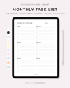 Monthly Task List Digital Planner for Goodnotes, Notability, Ipad