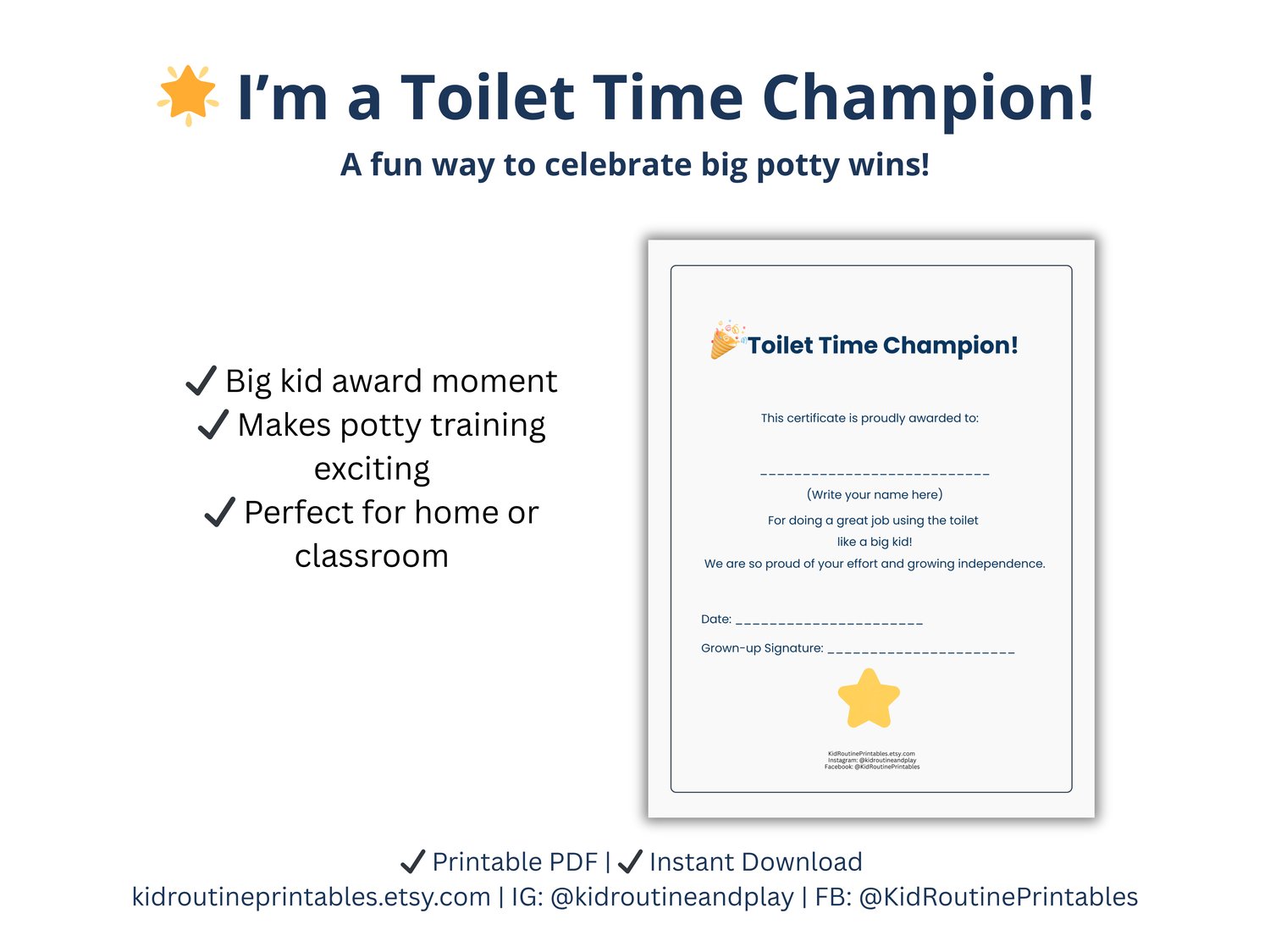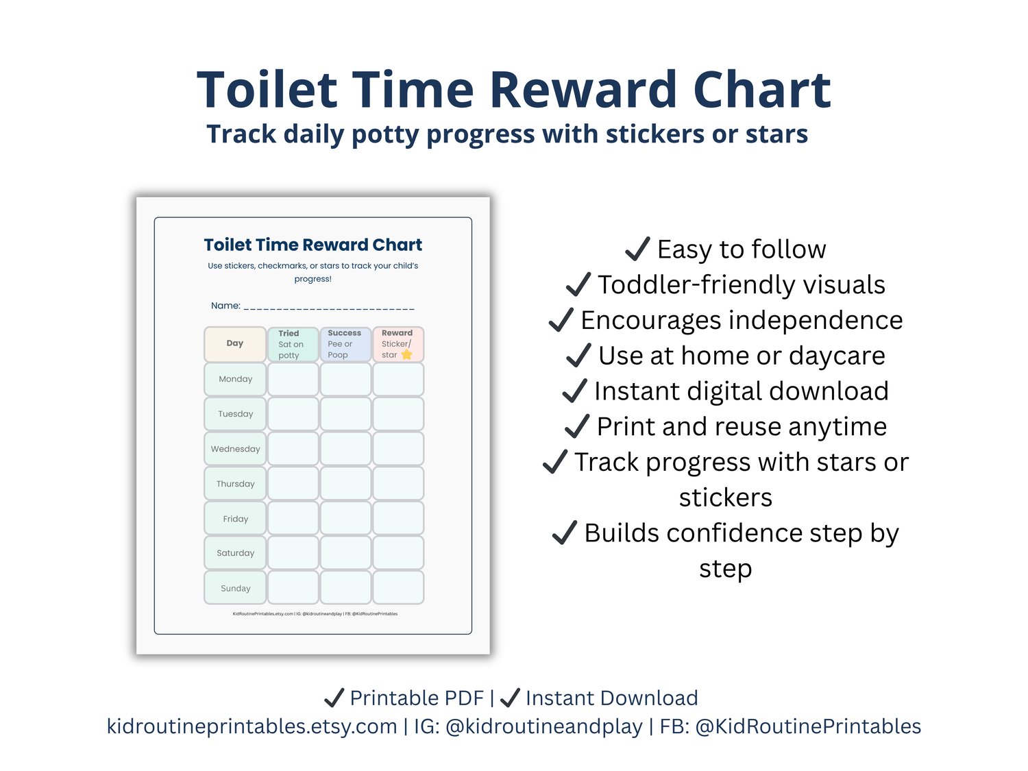 Toilet Training Chart for Toddlers, Visual Routine for Potty Time, Printable Reward System