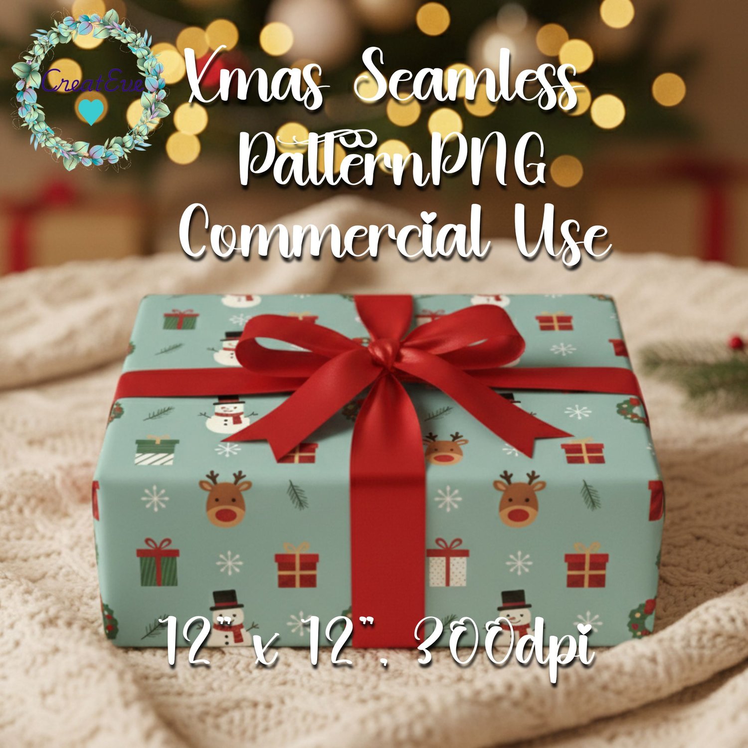 Christmas Seamles Pattern PNG, 300dpi, 12" x 12"