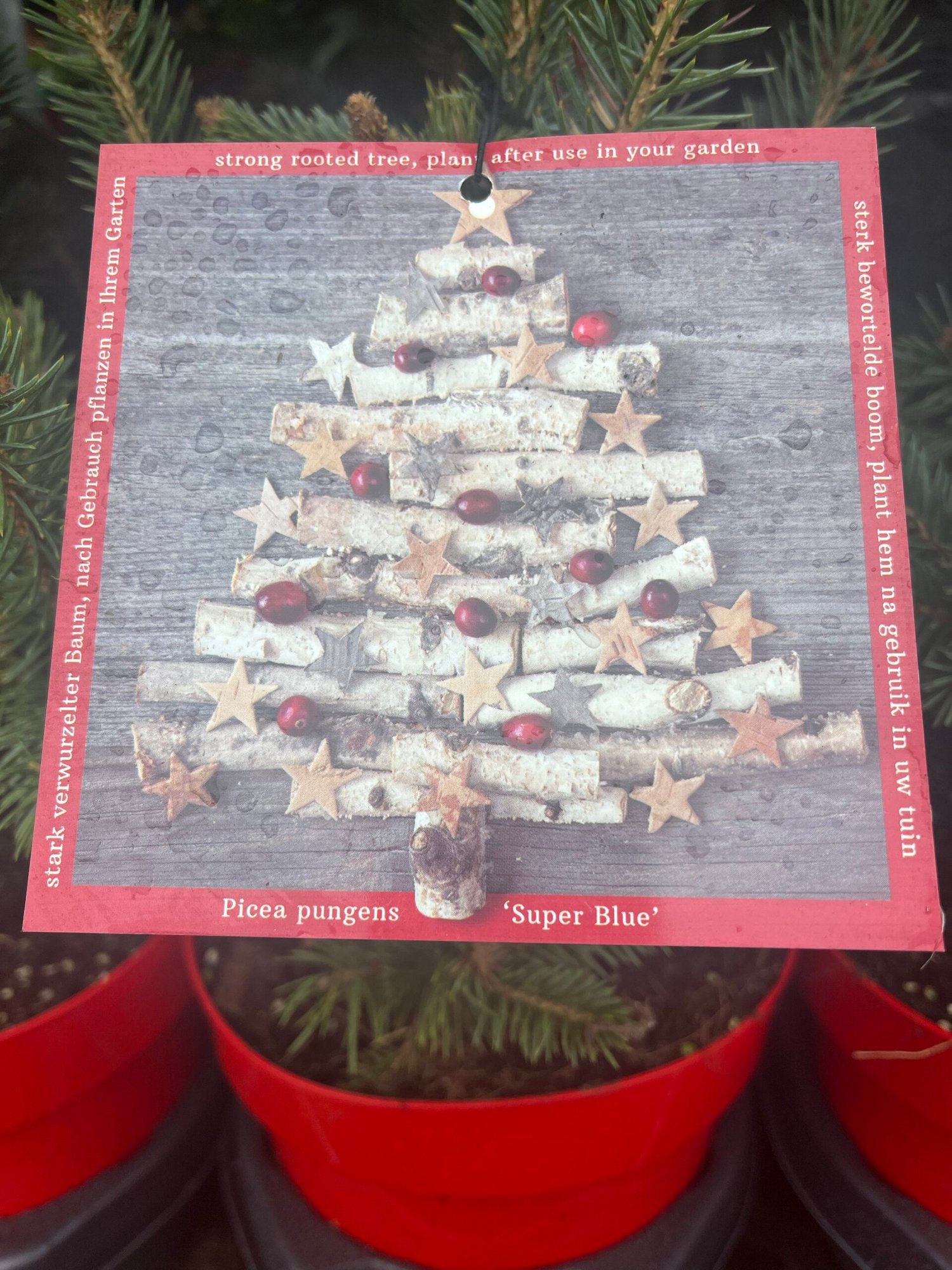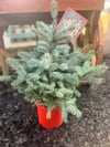 This is a lovely pot grown blue Christmas tree. It can be planted in the garden or in a pot so you can bring into your house and decorate for Christmas year after year.