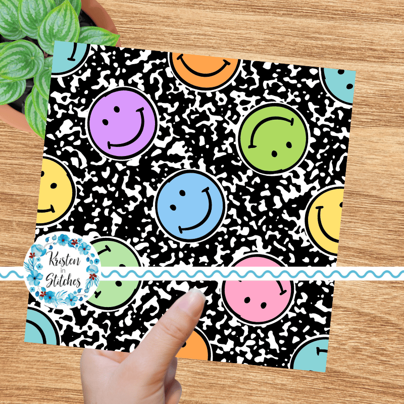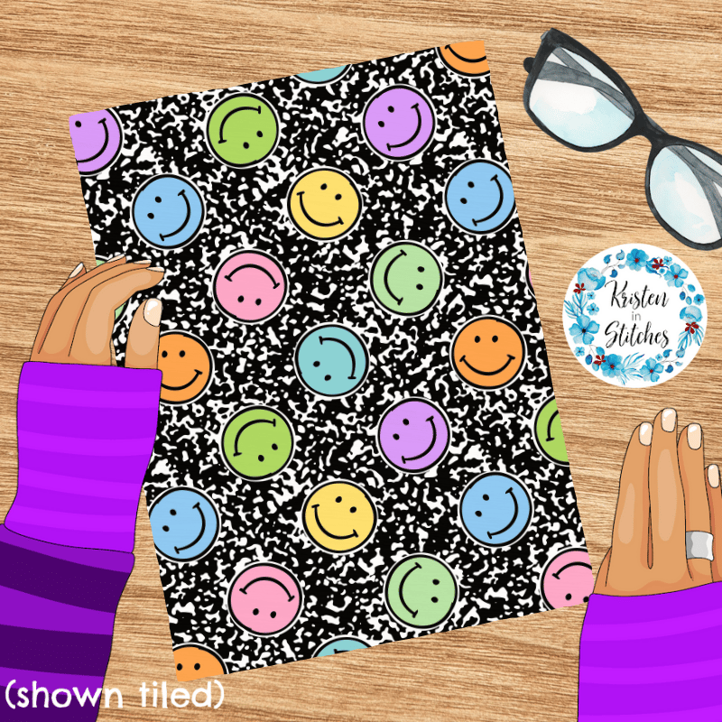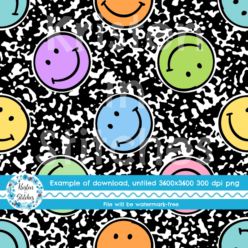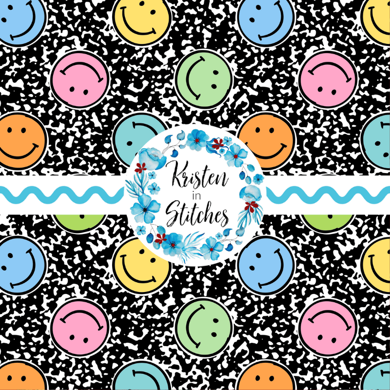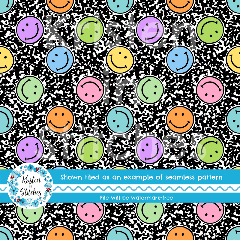 Pastel Rainbow Happy Face Composition Notebook Seamless Pattern