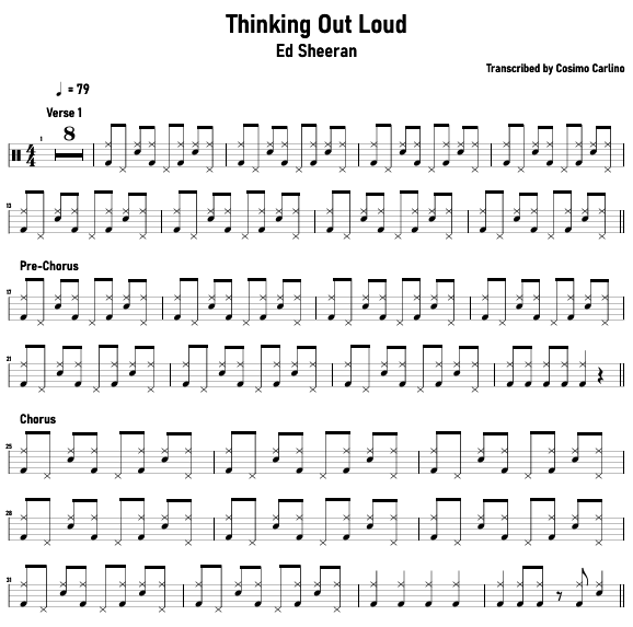 Thinking Out Loud - Ed Sheeran Full Drum Transcription in PDF