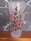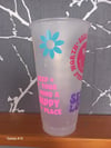 24oz cold cup comes with plastic lid and straw. The design is made using high quality vinyl. Handmade to order
