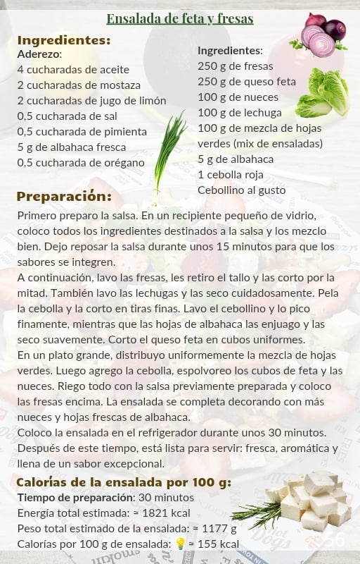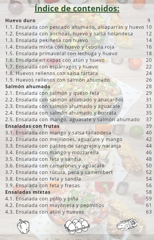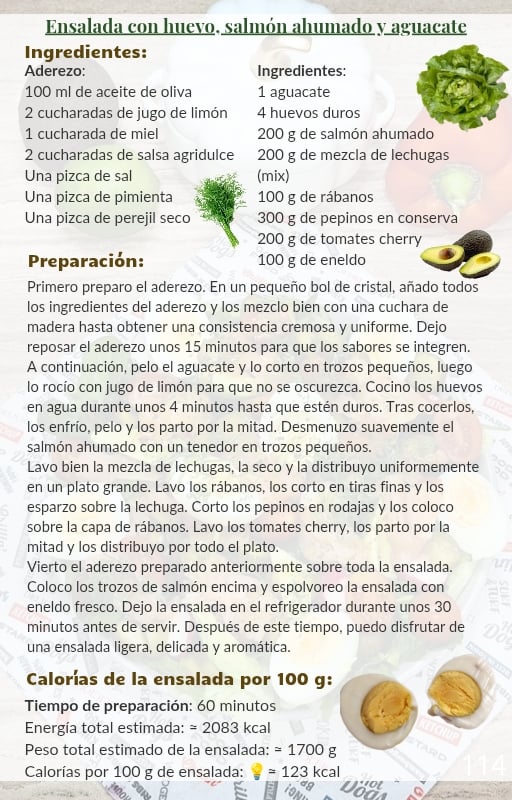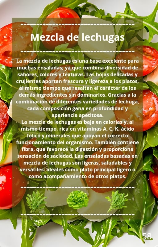 En su interior encontrarás 50 recetas cuidadosamente elaboradas de ensaladas saludables, y cada una de ellas incluye el cálculo exacto de calorías por cada 100 g de ensalada preparada.