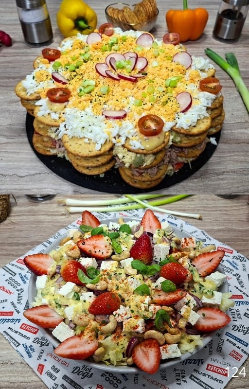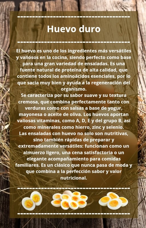 • ensaladas con jamón, mariscos y opciones vegetales