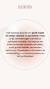 Elke kaart bevat waardevolle informatie over een specifiek kristal, inclusief de unieke eigenschappen en toepassingen. Daarnaast vind je op elke kaart een krachtige affirmatie die je begeleidt op je spirituele pad en je helpt je intenties te versterken.