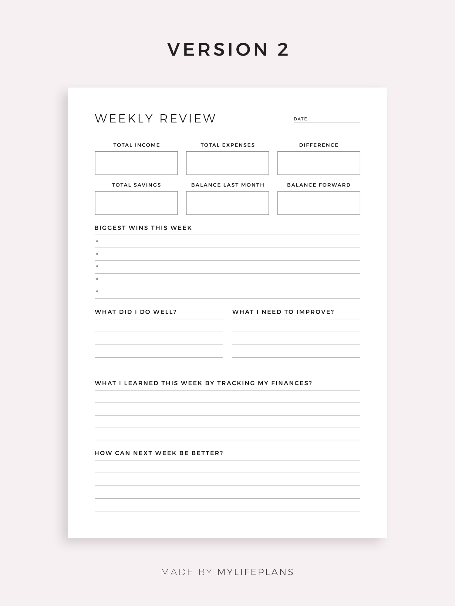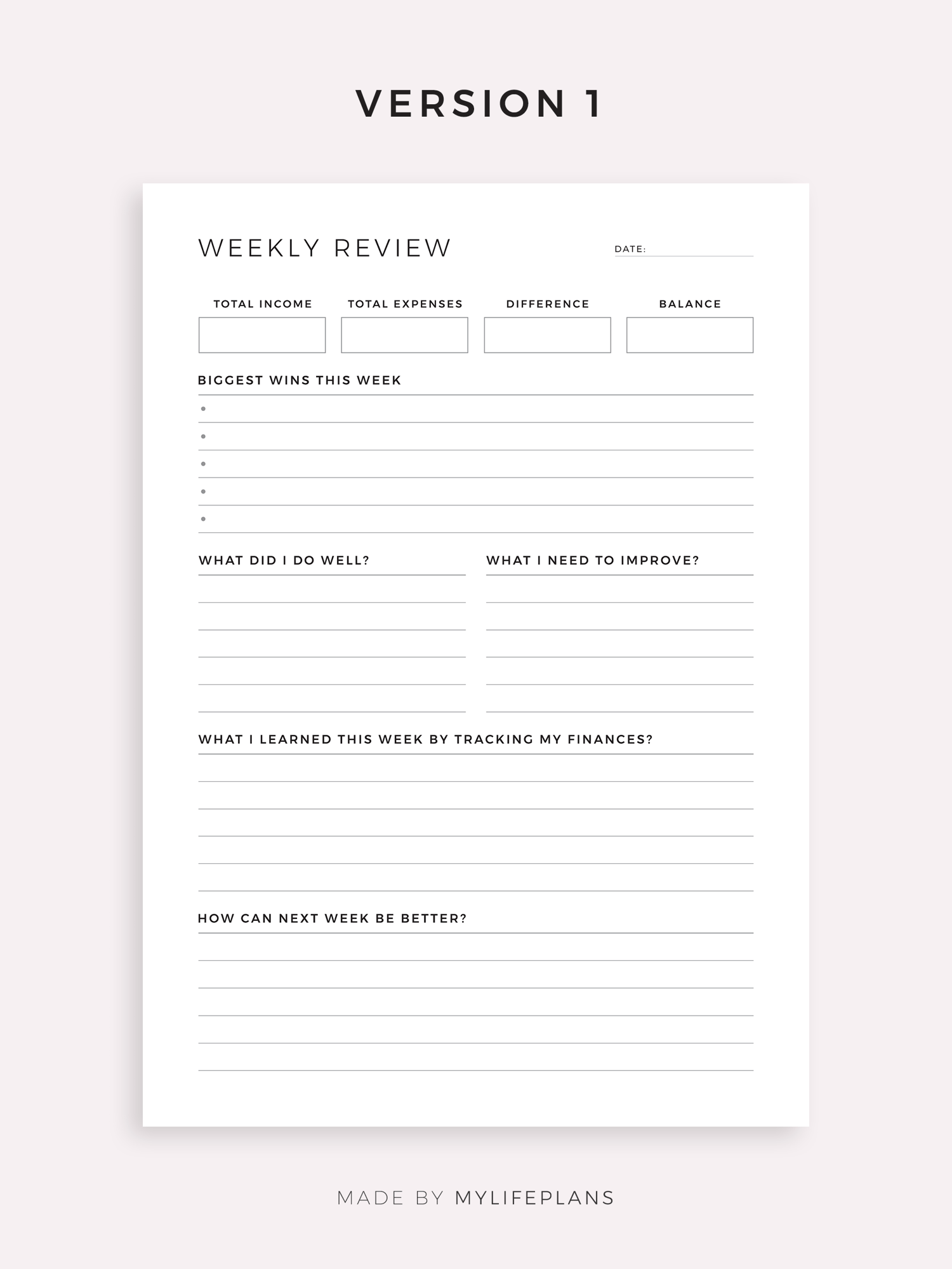 This is a printable weekly financial review — just download, print, and start using it right away.