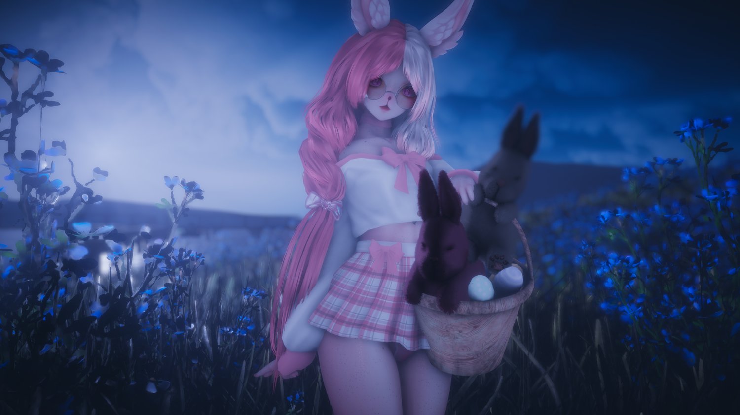 ❀ Head - Skiva ❀ Makeup - twilight zone ❀ Eyes - DeadBoiBlue ❀ Body -Zinpia ❀ Body Freckles - lushstarlight ❀ Short Hair - v3ix ❀ Long Hair - v3nix ❀ Glasses - Me ❀ Bunny ears - daCozyGremlin ❀ Necklace - Awhseals ❀ Sweater - urgrandma ❀ Shorts - Pastel Aesthetics ❀ Heels - Nessy ❀ Slippers - THELAIRODSEO ❀ Basket - pawies ❀Body Glitter - DeadBoiBlue ❀ Main outfit - Cupkake ❀ Sfw Decal - Gm