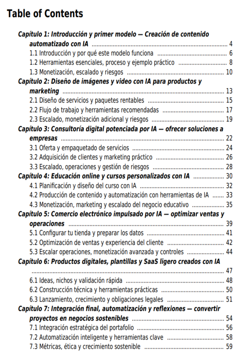 ¿Quieres iniciar un negocio rentable desde casa sin grandes inversiones y aprovechando el poder de la inteligencia artificial? Este ebook es tu mapa paso a paso para descubrir los 7 modelos de negocio más actuales que están generando ingresos reales en todo el mundo.
