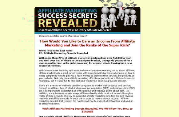Affiliate Marketing Secrets Revealed Teaches You How to Select Winner Affiliate Programs and How to Maximize Revenue From Those Picks!